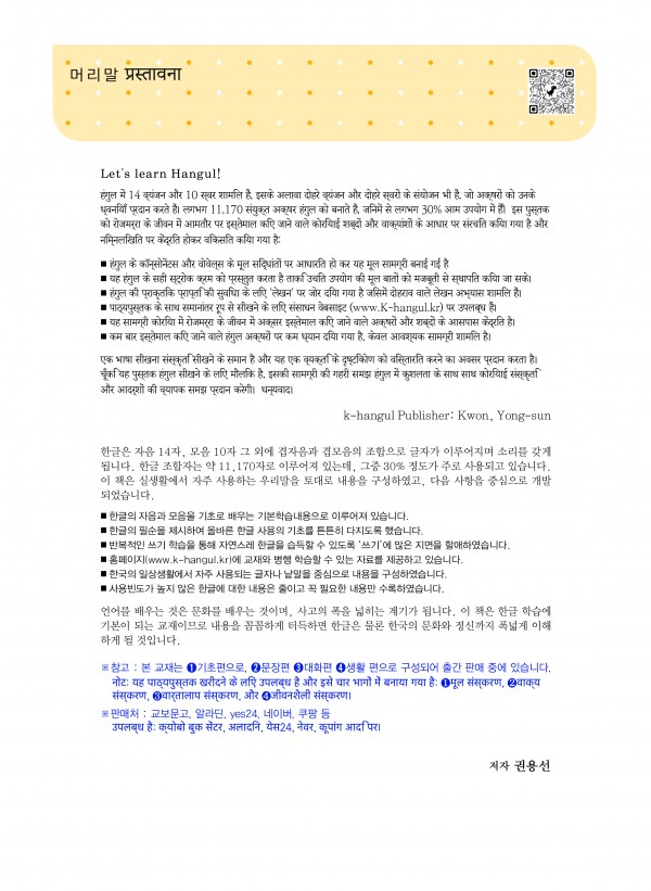 '힌디어를 사용하는 국민을 위한 기초 한글 배우기 1호 기초편' 초판 출시