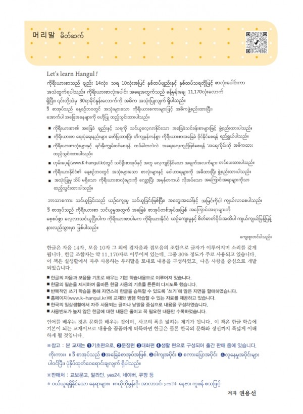 출간되어 안내코자 합니다.(미얀마어로 한글배우기)