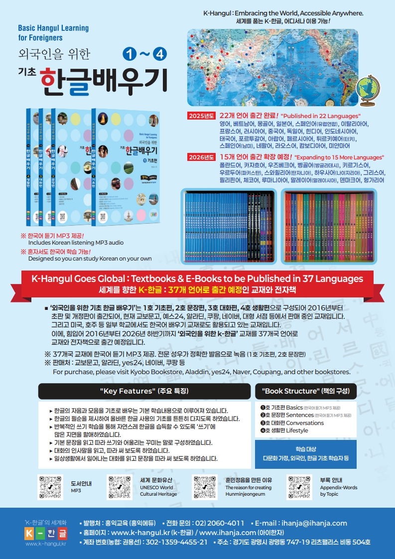 By 2026, Hongik Education will complete the publication of textbooks and e-Books in a total of 37 languages, providing an optimal learning environment for Korean learners worldwide.